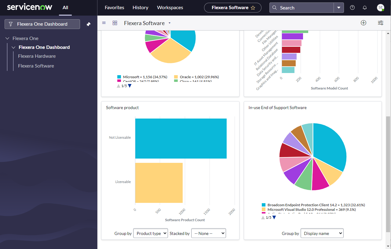 Flexera One Dashboards in ServiceNow—Flexera Hardware Dashboard and Flexera Software Dashboard