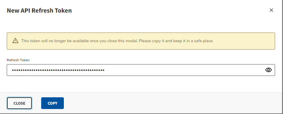 5. Click Copy to copy the refresh token and then save it to a secure location for future reference.