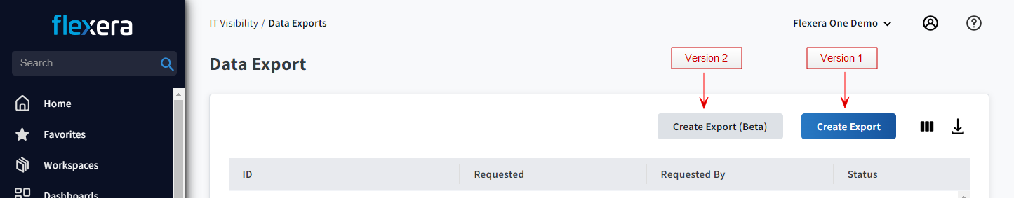If you only see a Create Export button, you are either on the Technology Intelligence Platform version of export or export version 3 of IT Visibility.