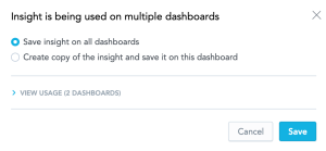 • If the insight is included on multiple dashboards and you want to update it on all dashboards, select Save insight on all dashboards and click Save.