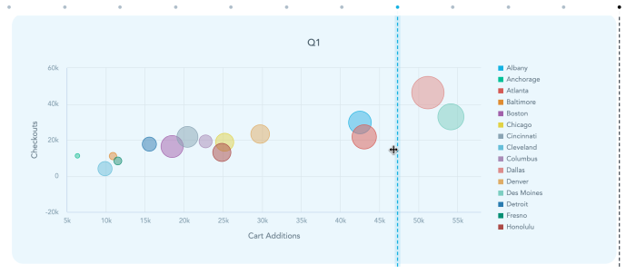 If your insights have too much information and are unreadable, you can zoom into details. First, you must edit the dashboard to enable zooming for individual insights, then you can zoom insights when viewing the dashboard.