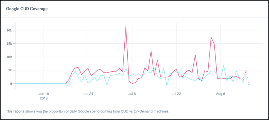 These reports shows you the proportion of monthly and daily Google spend coming from CUD vs On-Demand instances.
