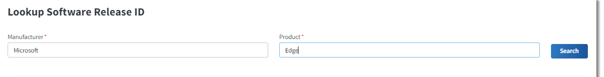 Click the Find or Change button beneath the field. (The Find button is displayed if no value is currently assigned to the field; the Change button is displayed if an ID is currently assigned.) The Lookup Software Release ID slideout is opened. (If a software release ID is currently assigned to the bucket, this ID is displayed at the top of the slideout.)